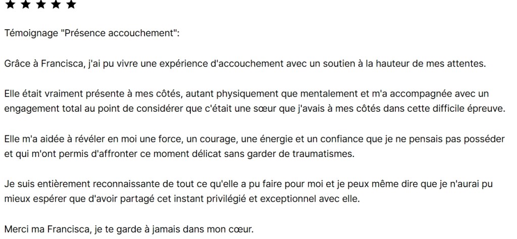 Cette maman savait que personne dans son entourage ne serait en mesure de l’aider pleinement dans son projet de naissance, donc elle a prit le courage de mon contacter… Lis son retour!!!